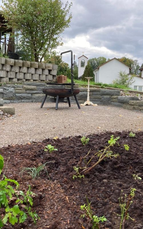 4. Sitzplatz mit Feuerstelle & Trockensteinmauer